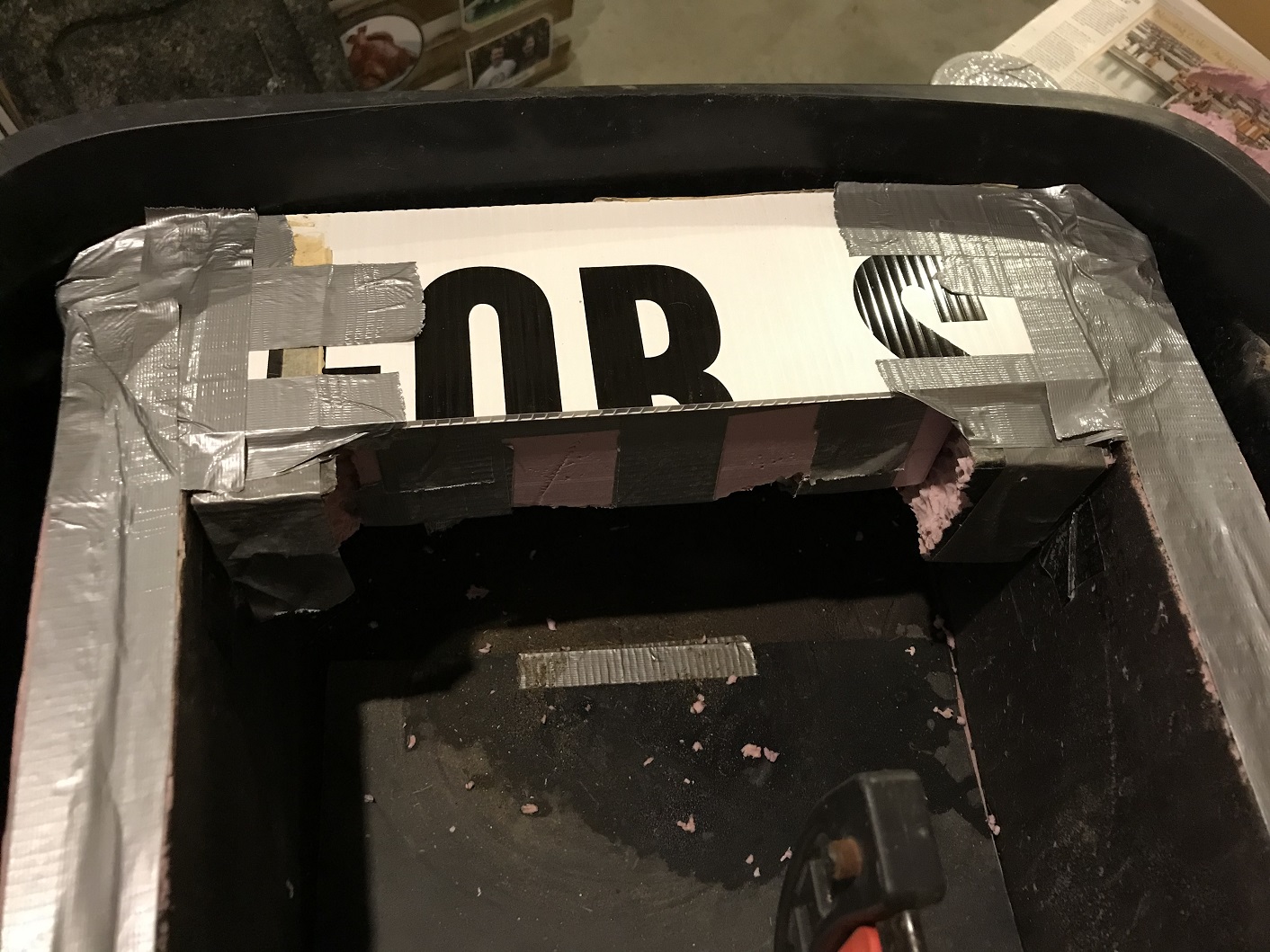 So to fix it, I cut a new piece of insulation, then cut the lid to match it as best I could.  Of course duct tape was used to cover the seams for additional measure.