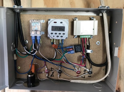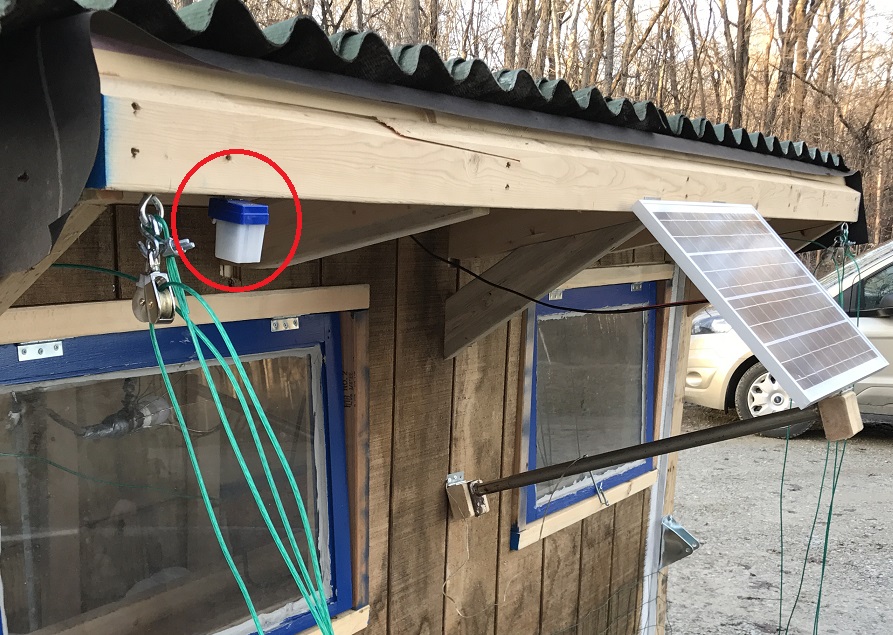 I’ll still have a constant phantom power draw from the photocell (circled in red in the picture of the solar panel) that’s used to trigger the door at morning and night, but that’s used for either method. I like the photocell because it changes with the season and will be more consistent with morning and night than trying to use a timer.