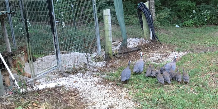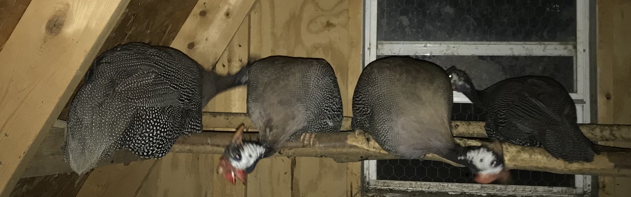 In July something attacked them during the day. I had 8 when I let them out and that night only 3 adults, 2 injured, and 1 teen. While the Guineas didn’t want to combine flocks, they decided to take in the stray teen. So the adults adopted the teen and we were back to a flock of 4 again.