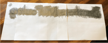 We used a home made carbon paper method to transfer the outline to the boards for painting. Basically cover the back side with pencil graphite then traced real hard.